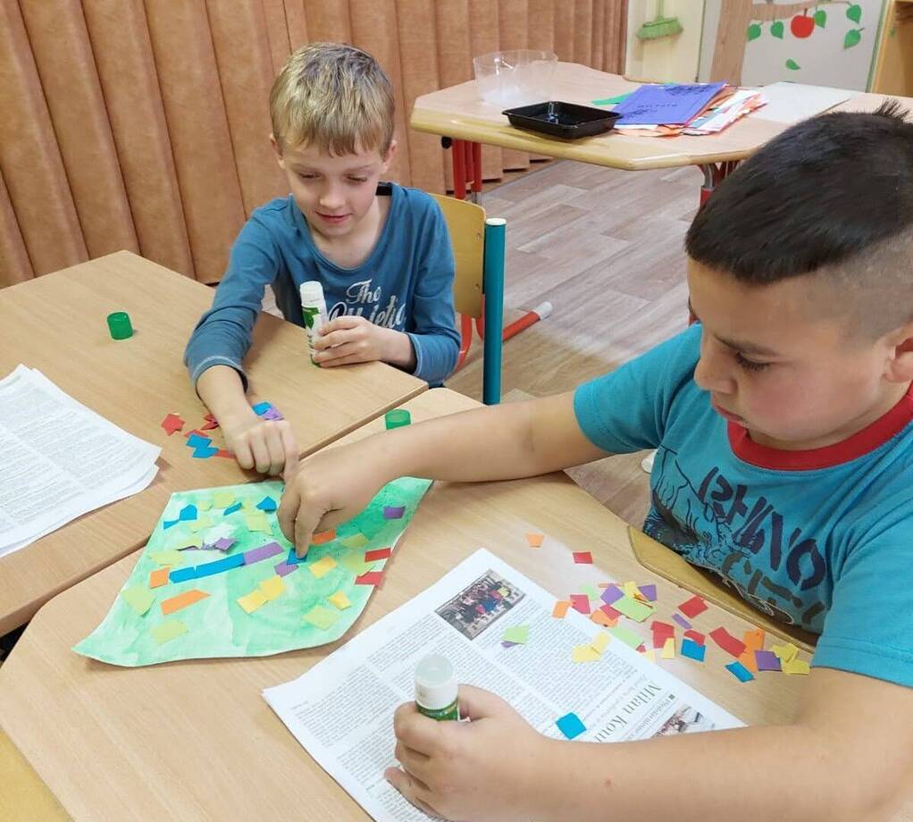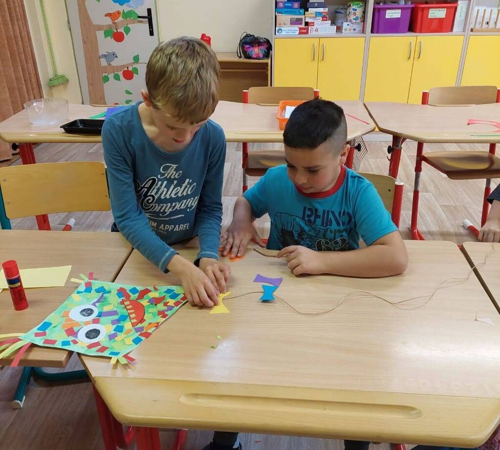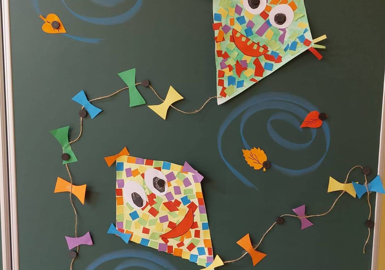 Barevné draky jsme společně ve dvojicích tvořili, zazpívali si naši oblíbenou písničku s ukazováním "Vyletěl si pyšný drak",