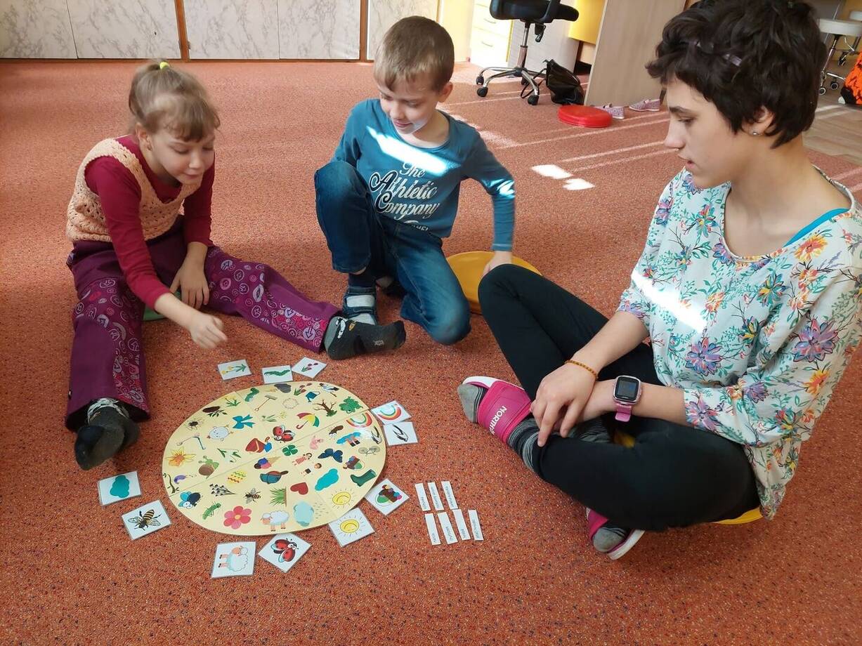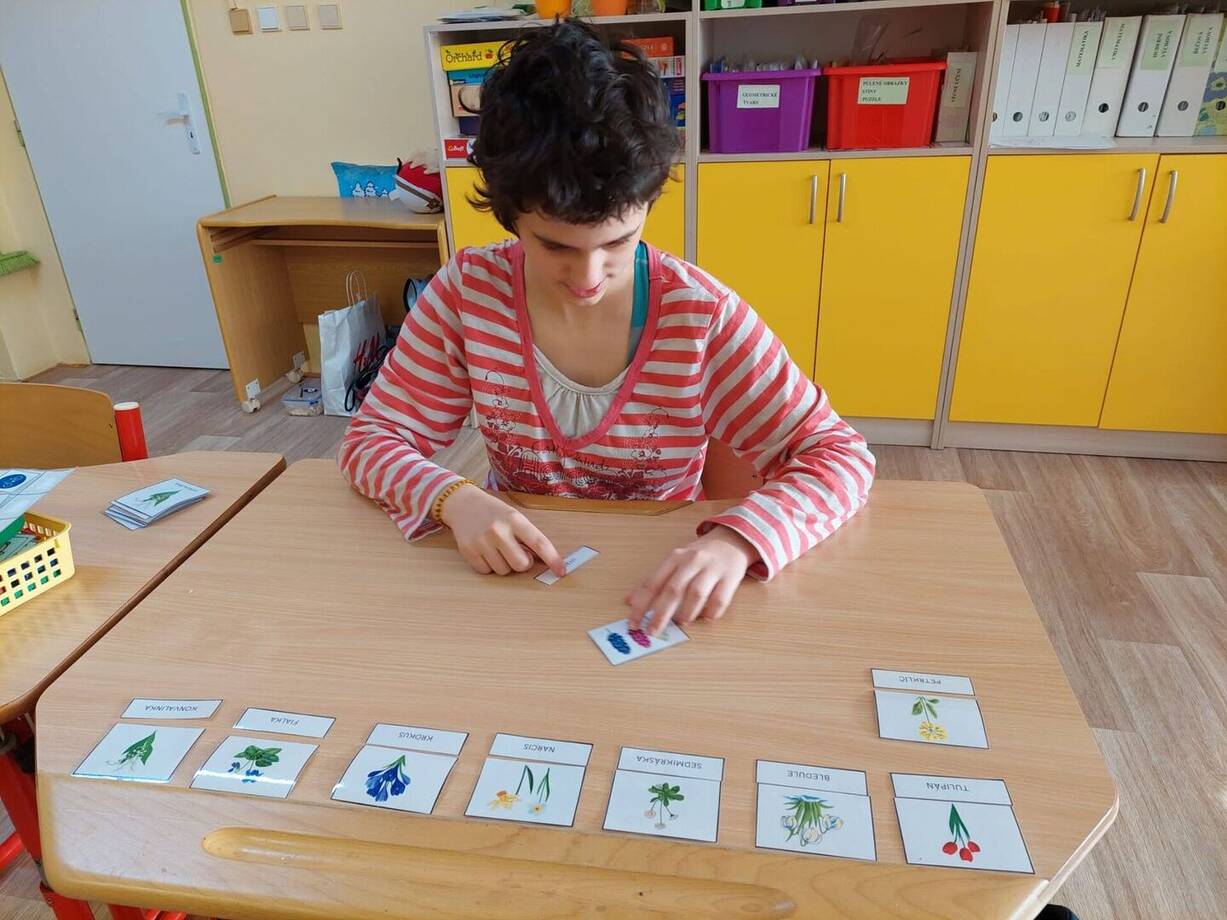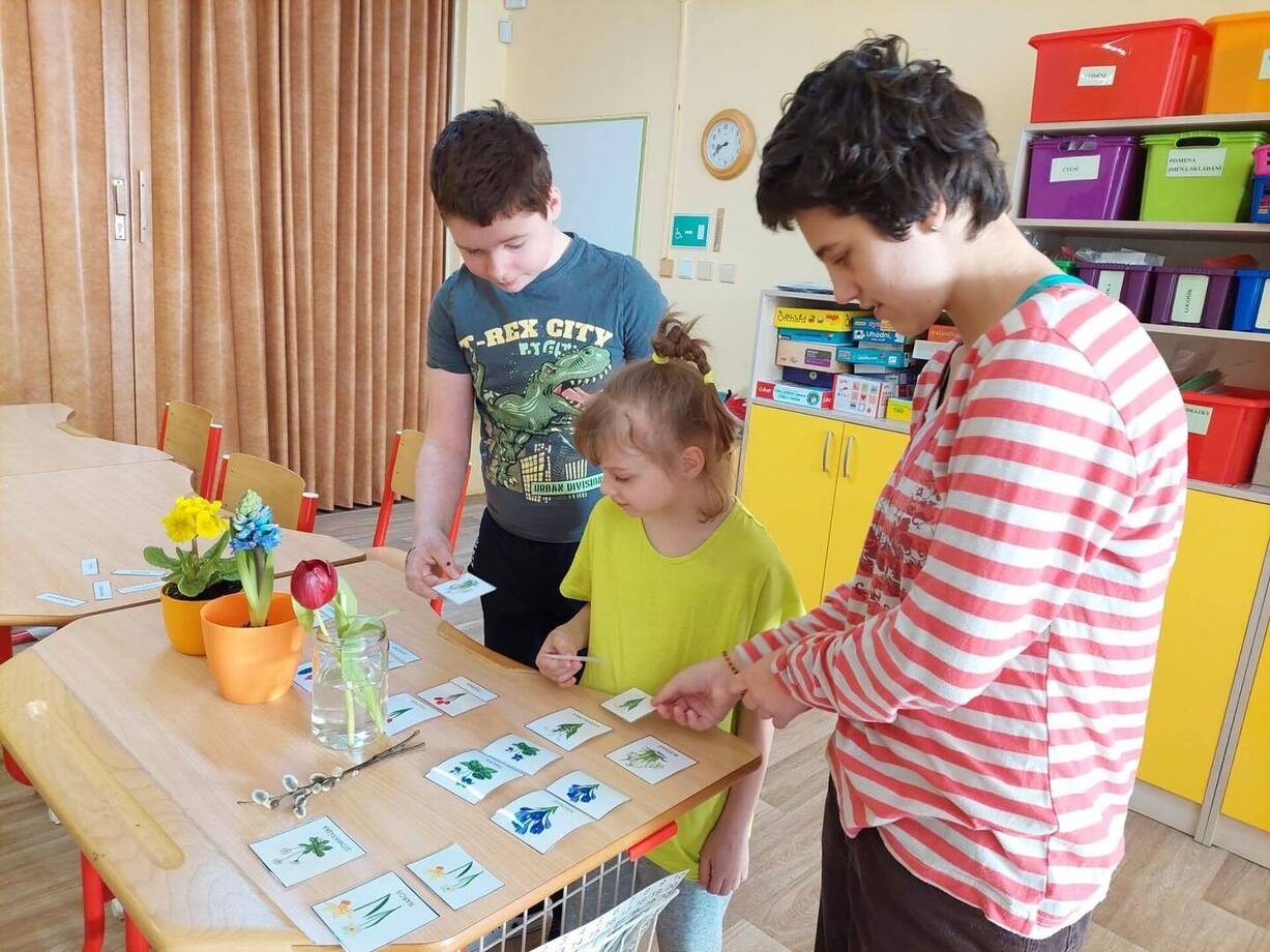 Vyrábíme klíč s jarními motivy, procvičujeme zrakové vnímání pomocí jarního postřehovacího kruhu, poznáváme jarní květiny podle barvy, vůně, názvu a pracujeme s třísložkovými kartami.