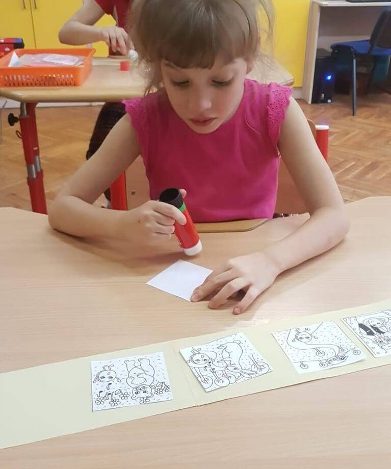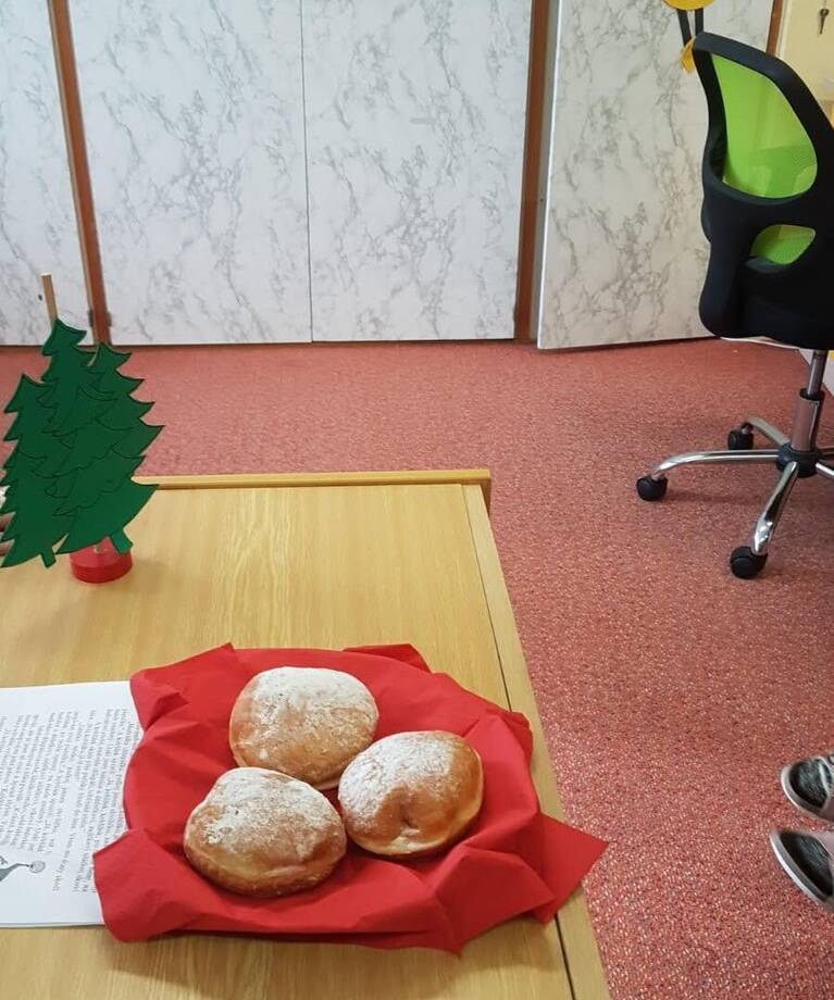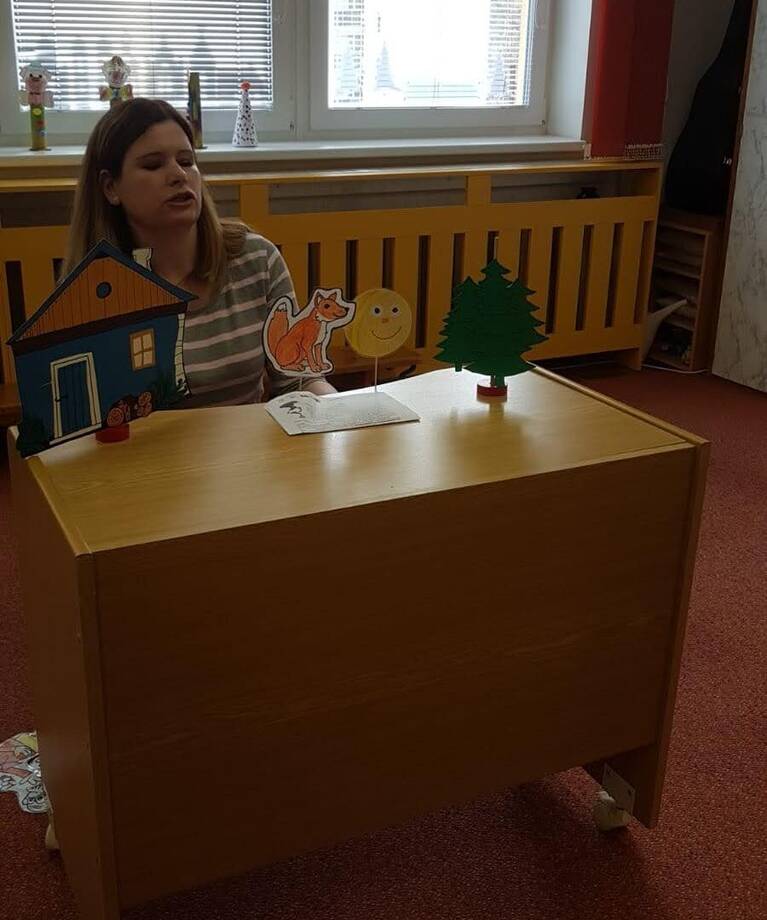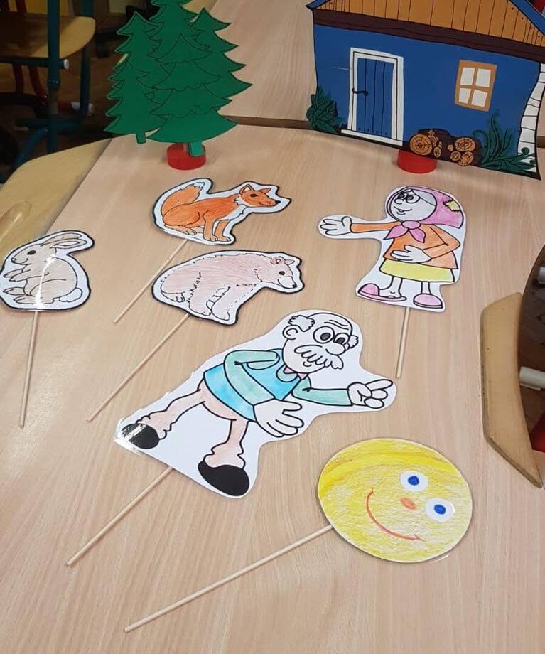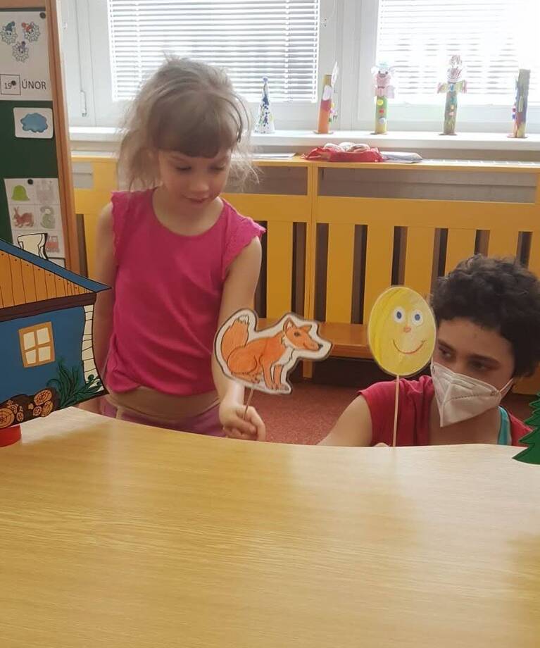 Pohádku nám nejdříve zahrála paní učitelka a pak jsme si ji zahráli společně, ochutnali jsme i voňavé koblížky a zkusili sestavit příběh o Koblížkovi z obrázků.