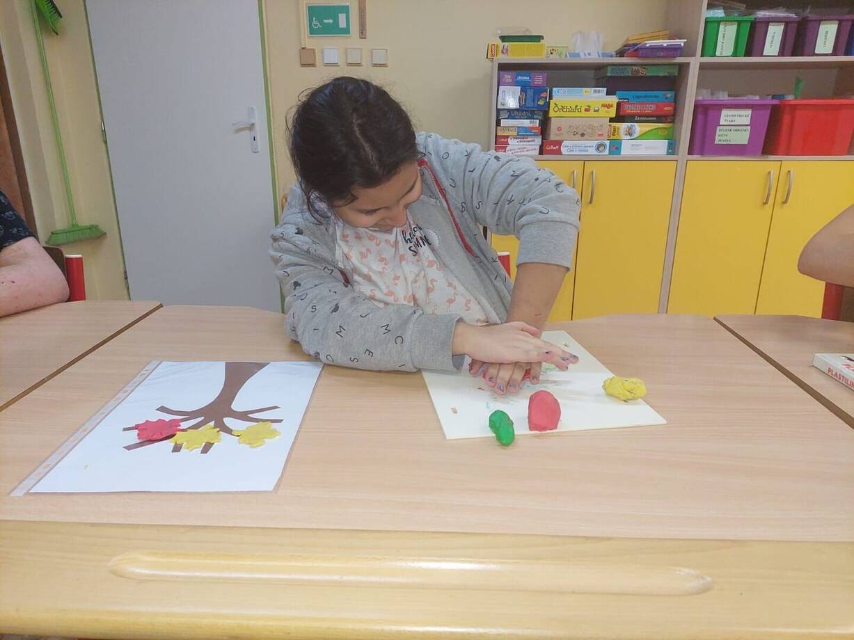 Povídáme si o barvách podzimu, poznáváme podzimní přírodniny, třídíme listy podle barvy, velikosti, názvu stromu, ke kterému patří. Vyrábíme puzzle z listů, vykrajujeme listy z plastelíny a tvoříme podzimní stromy.