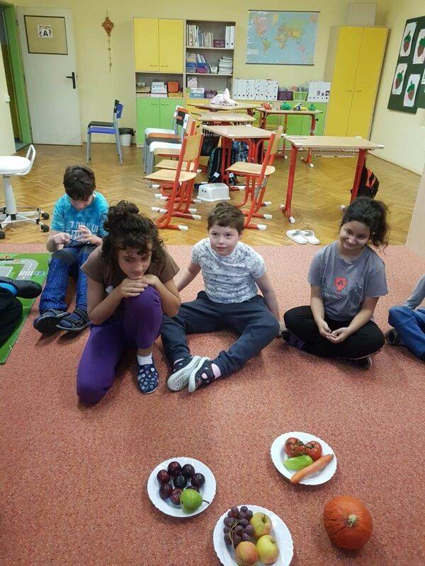 Ve čtvrtek jsme se sešli s kamarády ze třídy A, abychom ovoce a zeleninu hmatem i podle chuti poznávali, společně jablíčkové muffiny upekli a na závěr uspořádali turnaj v Boccie. Bylo to moc fajn a už se těšíme na další společnou akci.