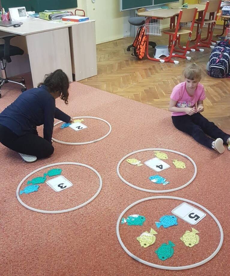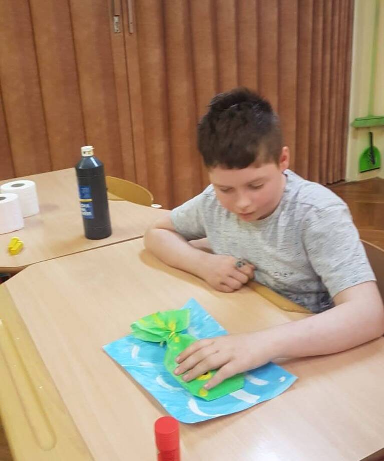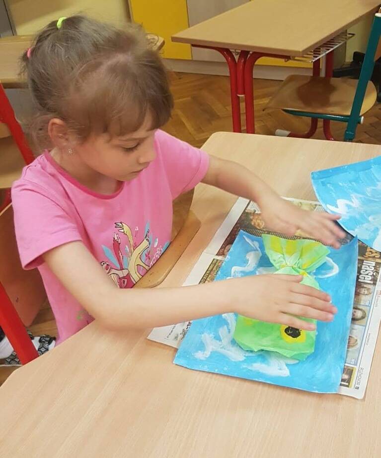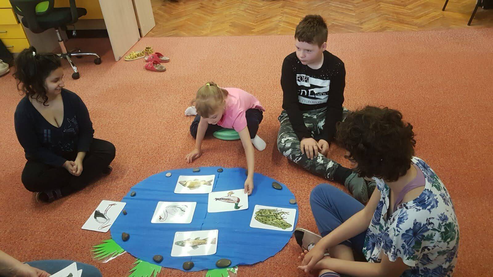 Povídali jsme si a poznávali živočichy, kteří žijí u vody nebo ve vodě, sledovali jsme, jak se z vajíček vyvinou žabky, počítali jsme a vyráběli rybky, zkusili jsme namalovat rybu jedním tahem. A také jsme se vydali pozorovat život u vody k nedalekému jezírku.