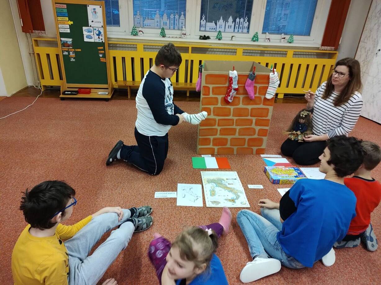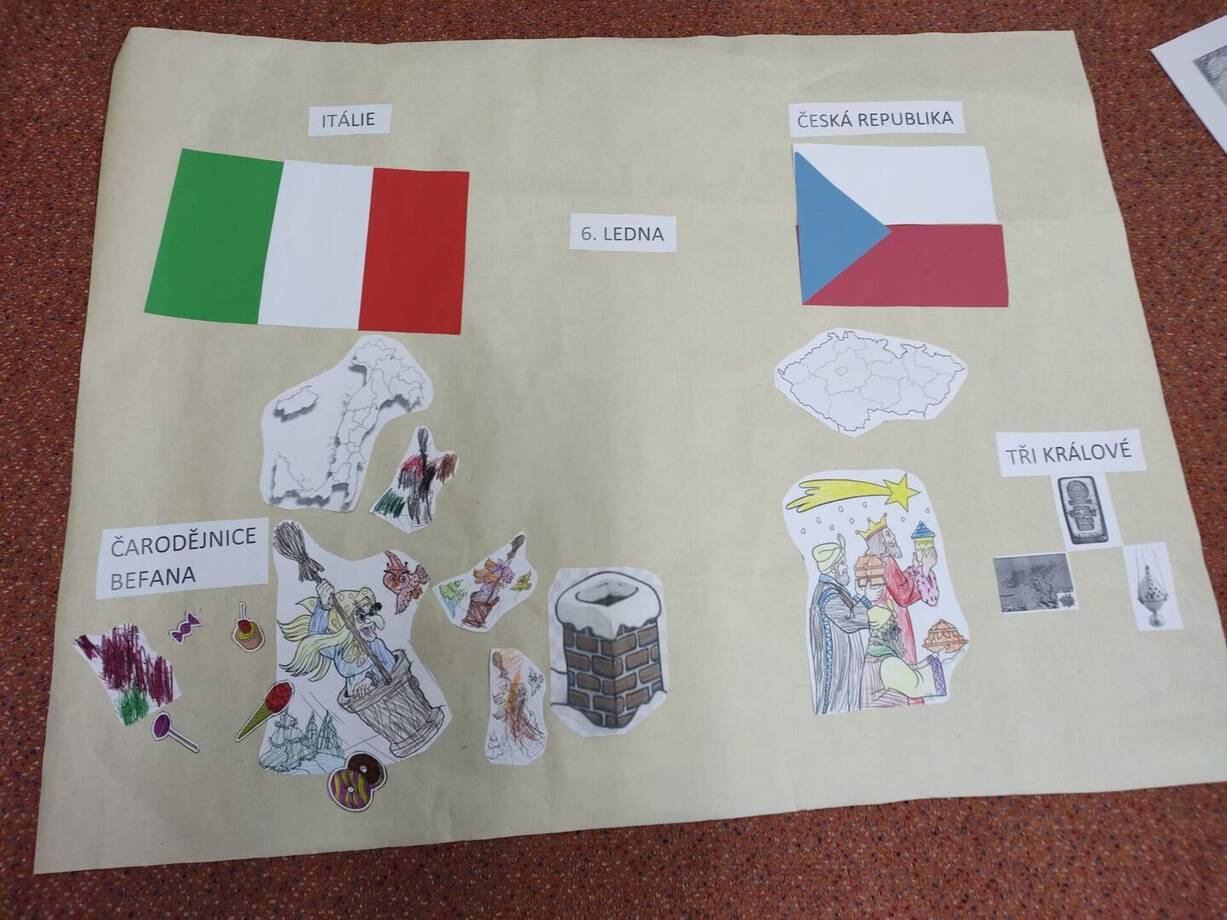 Dnešní den se děti seznámily v rámci projektového dne s tradicemi v Itálii. Poznaly čarodějnici Befanu, která jim komínem přinesla sladkost do punčochy. Poté hledaly předměty v hmatovém pytli. Vytvořily si koláž Česka a Itálie. Nejlepší odměnou byla pizza, kterou si samy upekly.