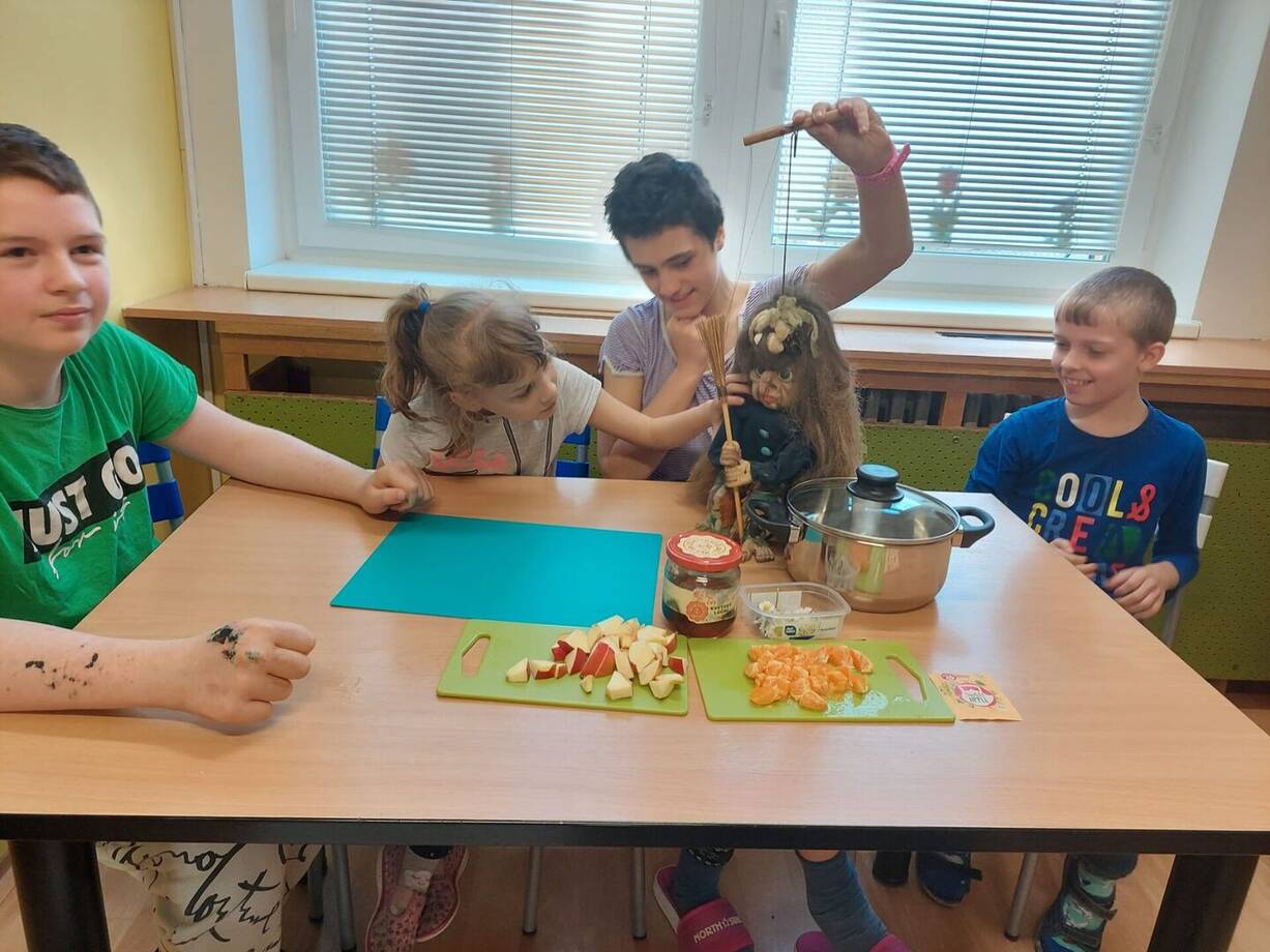Uvařili jsme elixír zdraví podle tajného receptu čarodějnice Malvíny a čarodějnice jsme si také vyrobili.