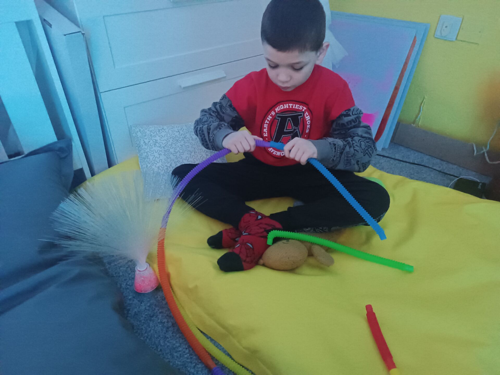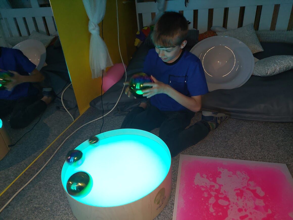 Snoezelen je místem nejen pro relaxaci, poznávání, ale také místem pro senzorické aktivity, které naše žáky velmi baví.