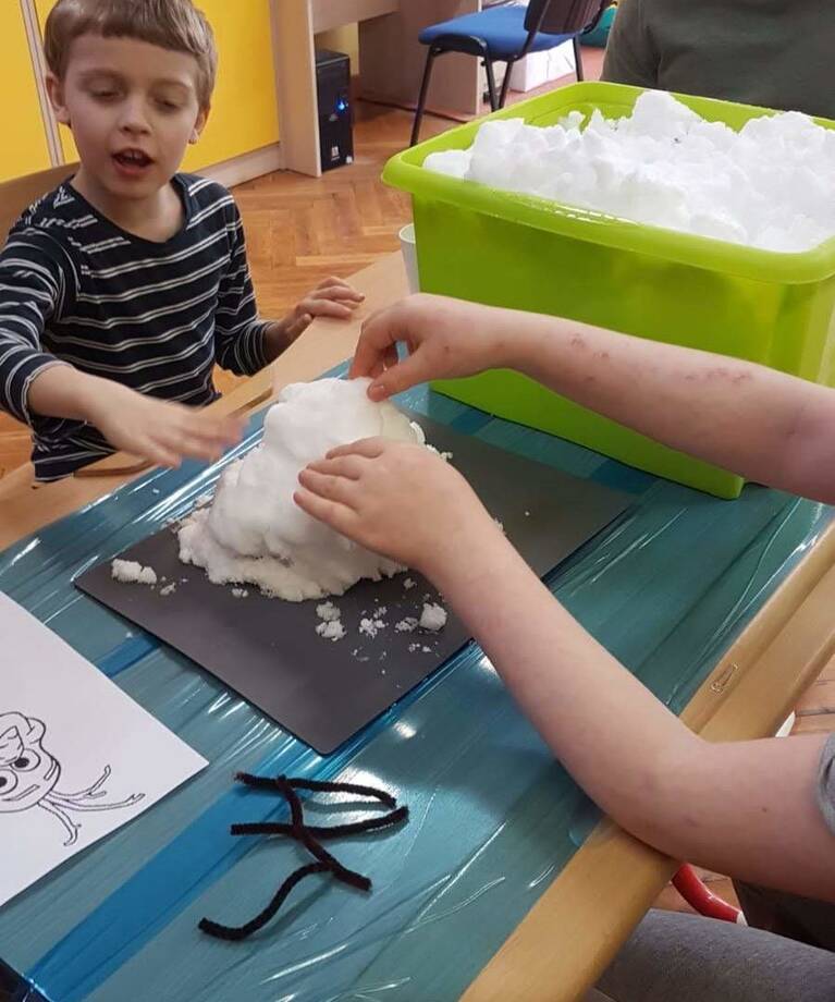 to jsme si říkali poslední únorový týden při pohledu na sněhovou nadílku za oknem. A tak se naše třída na chvíli proměnila v Ledové království a společně jsme si vytvořili známou postavičku sněhuláka Olafa.