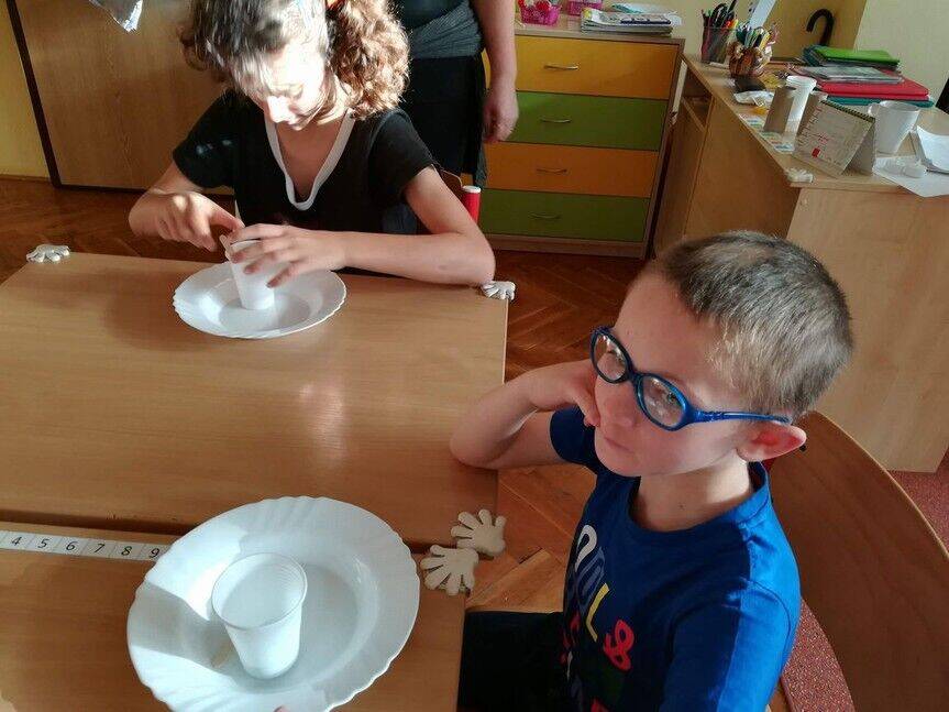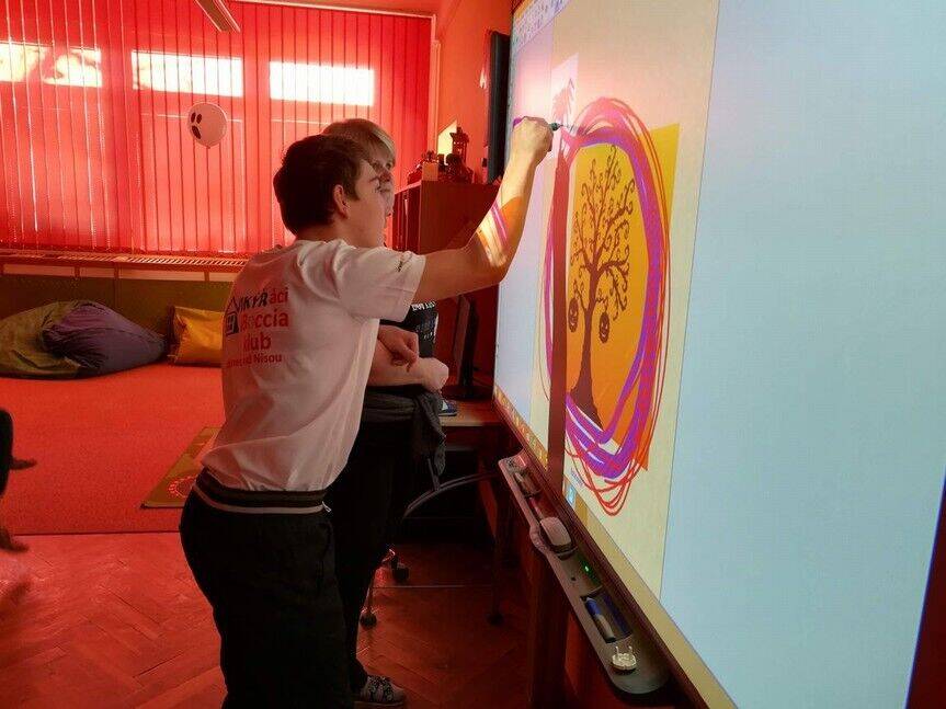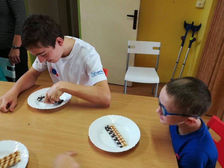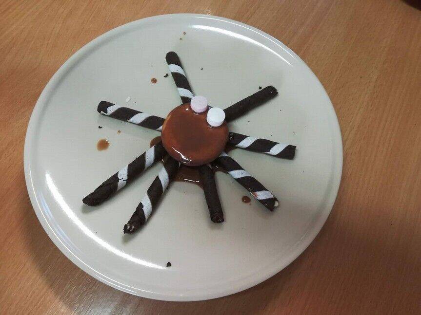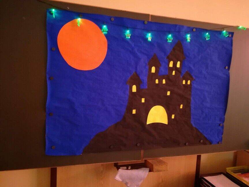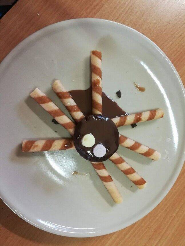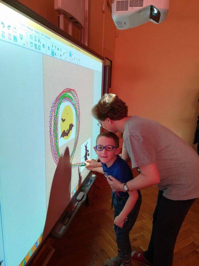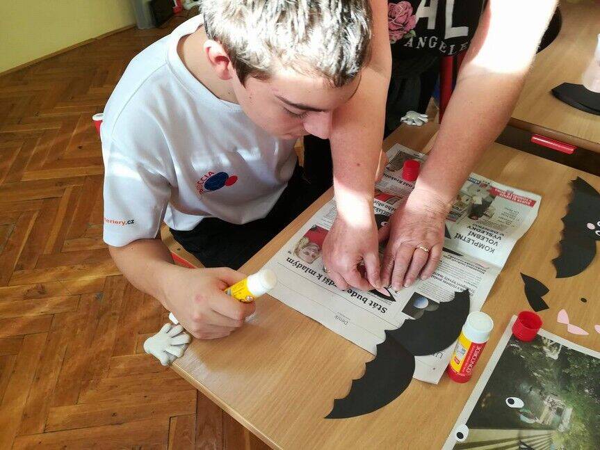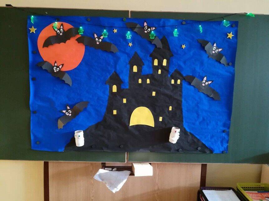 Připomněli jsme si s dětmi svátek Halloween. Na tabuli jsme měli namalovaný hrad a světélka, pak jsme pracovali na IT tabuli. Potom jsme si vystřihli papírového netopýra a udělali dva chemické pokusy. Nakonec jsme si vyrobili pavouka z tyčinek a čokolády, který nám moc chutnal.