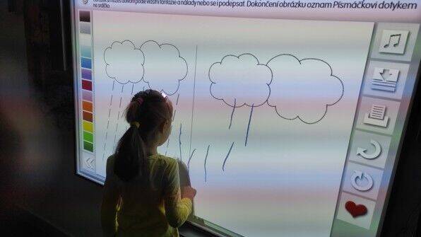 Na uvedené téma děti také procvičovaly grafomotorické aktivity na interaktivní tabuli - nácvik rovné či šikmé čáry. A v rámci ranního kruhu při práci na tabuli, umísťovaly kapičky na konkrétní místo. Opět všem patří velká pochvala!