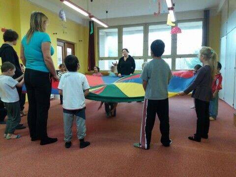 Není padák jako padák! Ten náš je barevný a rozhodně s ním neskáčeme ze střechy, ale hrajeme si s ním u nás ve třídě.