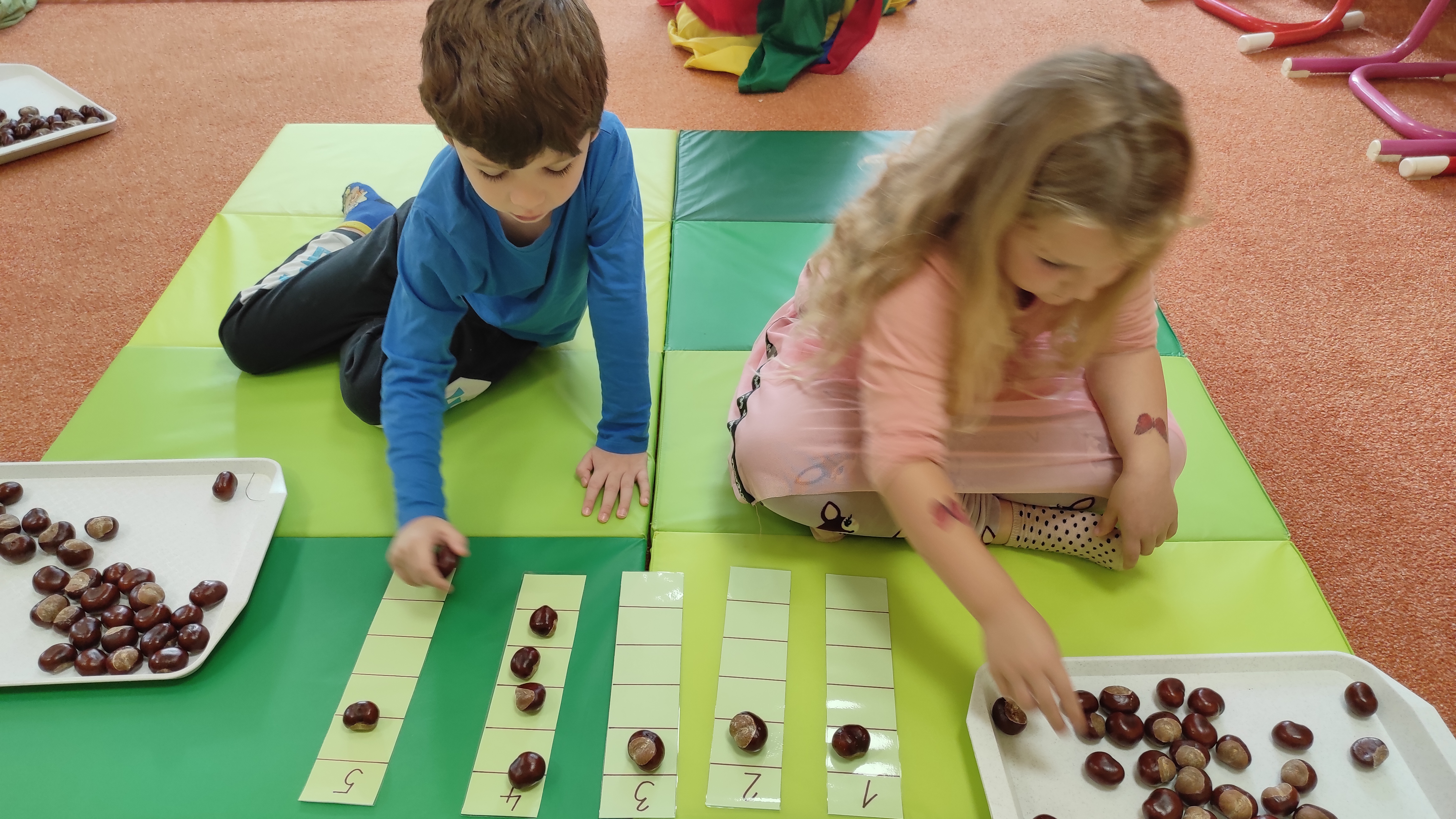 Z kaštanů nemusíme s dětmi pouze tvořit, ale můžeme je využít i jako pomůcku pro nácvik počítání a nebo také k rozvoji jemné motoriky a senzorických dovedností, jako je třeba stimulace plochonoží.