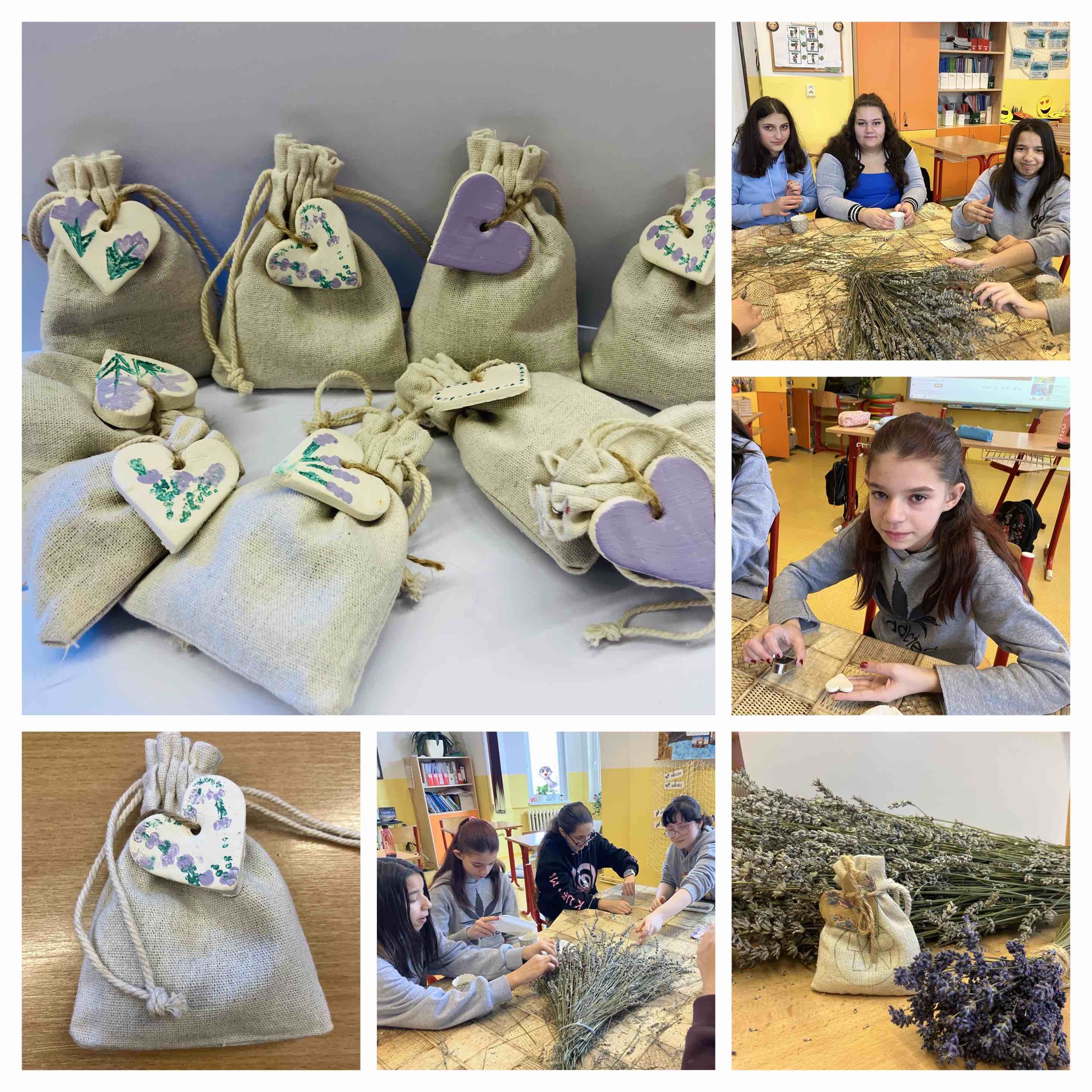 Na závěr jsme si vyrobily voňavé relaxační pytlíčky, které jsme naplnily sušenou levandulí. K nim jsme vytvořily také ozdobná srdíčka s motivem levandule. Tvoření jsme si moc užily a domů jsme si odnesly voňavou vzpomínku na společně strávený čas :-)