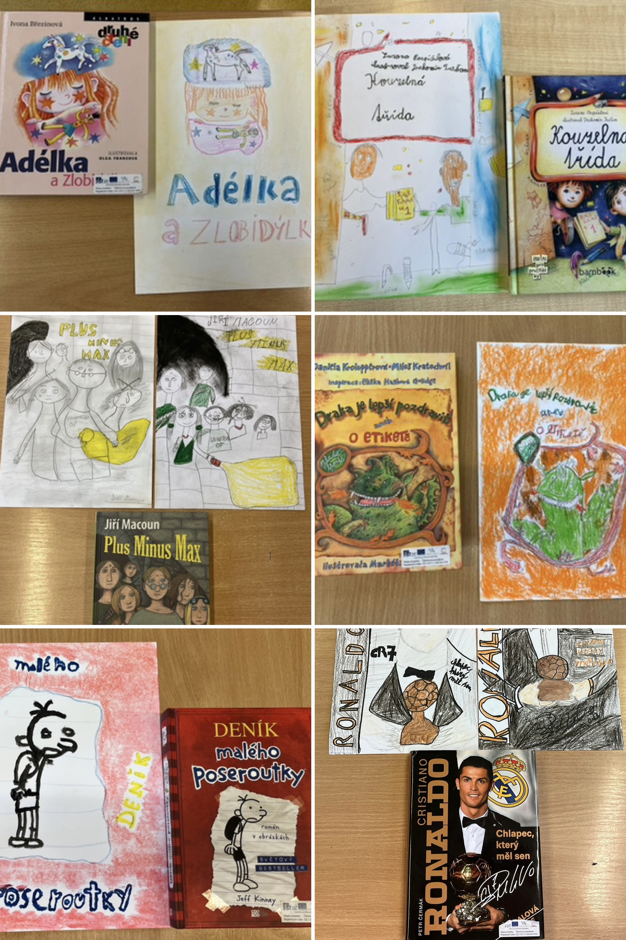 Dnes se naše třída proměnila v ilustrátorskou dílnu. Každý z nás si v knihovně vybral svou oblíbenou knihu a mohlo se začít. Navrhovali jsme vlastní obal knihy a přemýšleli, jak zaujmout čtenáře a vystihnout příběh. Vznikly originální a nápadité návrhy.