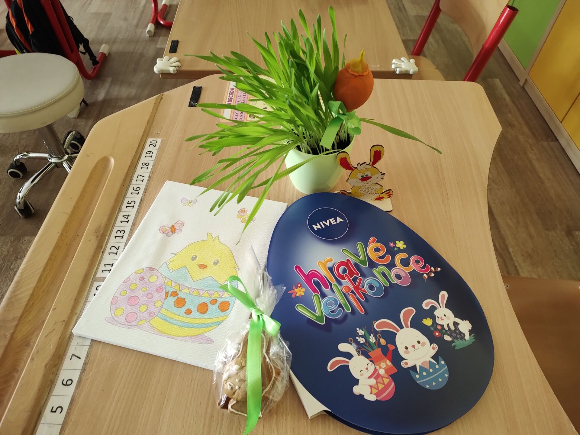 K Velikonocům si každý odnesl své výrobky domů. A k volné chvilce si děti odnesly zábavné luštění s nálepkami.